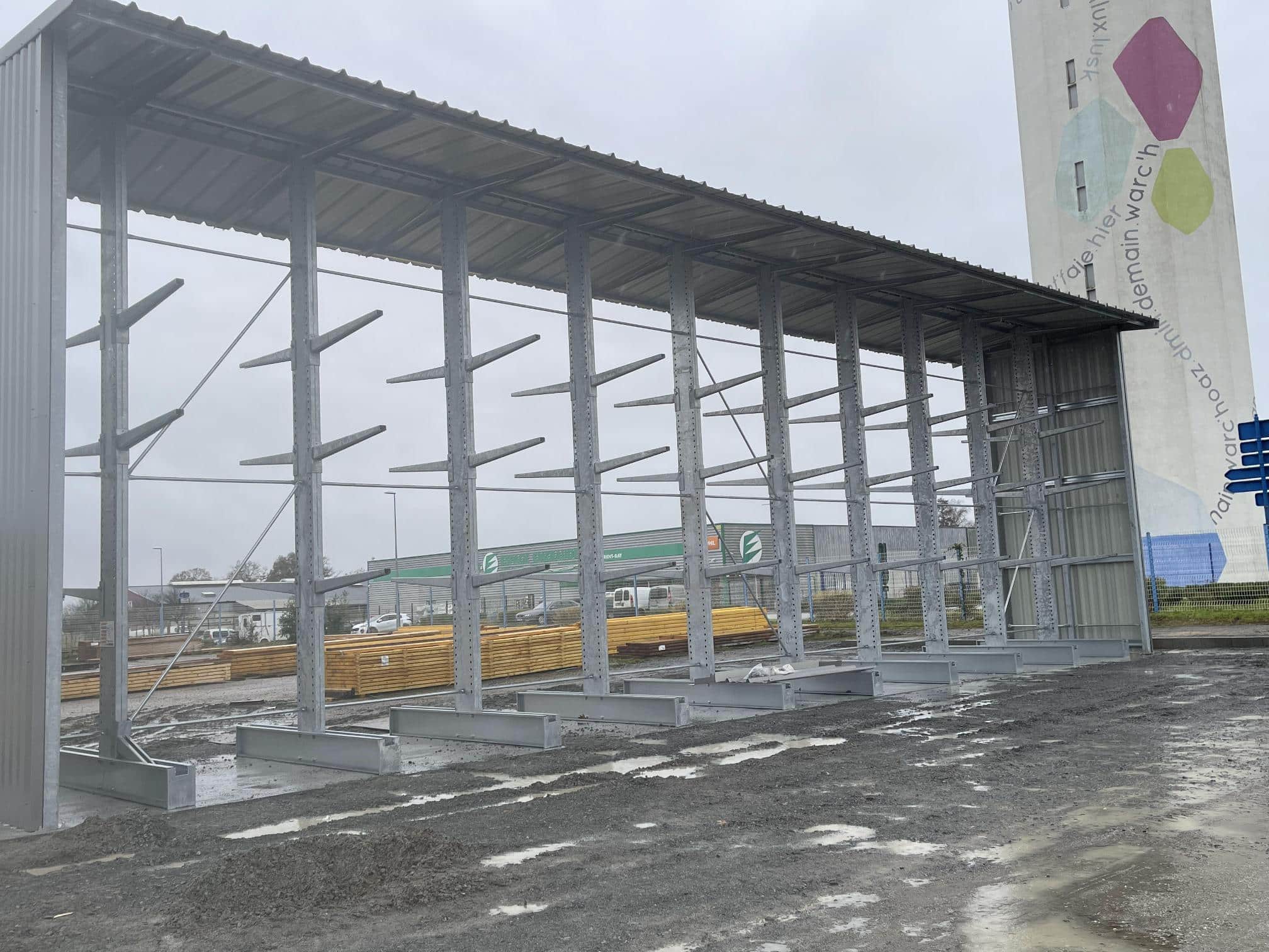 Installation d’un cantilever extérieur galvanisé pour un stockage sur mesure